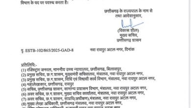 CG Breaking: Sushma Sawant appointed Principal Secretary, Law and Legislative CG Breaking: रायपुर। सामान्य प्रशासन…