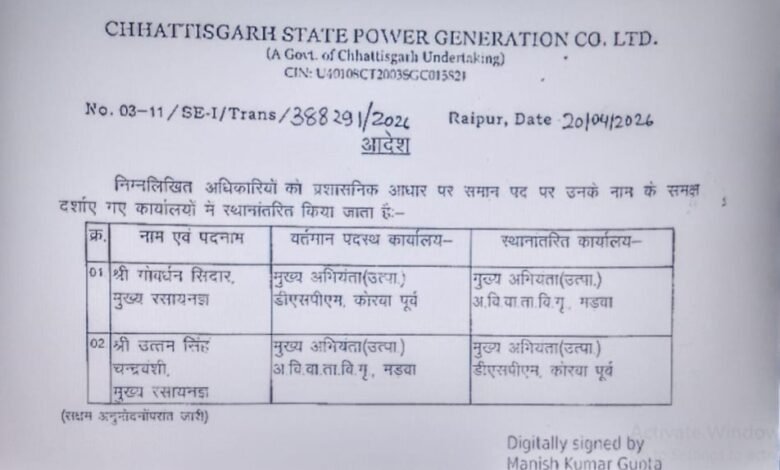 नवा रायपुर। Manish Kashyap reinstated छत्तीसगढ़ सरकार के वन एवं जलवायु परिवर्तन विभाग में बड़ा…