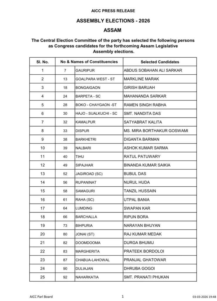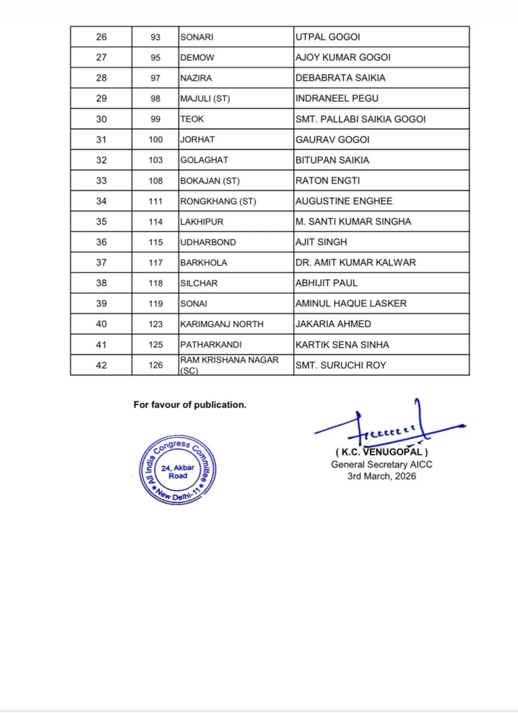 Assam Assembly Election : असम चुनाव से पहले कांग्रेस का बड़ा दांव…! 42 उम्मीदवारों की पहली सूची जारी