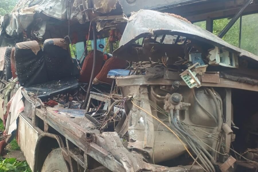 देवघर, 29 जुलाई। Big Accident : झारखंड के देवघर जिले में मंगलवार सुबह बड़ा हादसा हो गया। यहां बस और ट्रक में टक्कर हो गई। हादसे में 18 कांवड़ियों की मौत हो गई, जबकि 20 लोग घायल हो गए। पुलिस ने मौके पर पहुंचकर राहत और बचाव कार्य किया।
