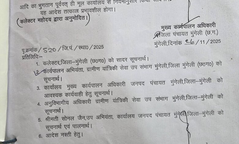 इस पूरे मामले ने जनपद पंचायत मुंगेली में प्रशासनिक कार्यप्रणाली और पारदर्शिता पर गंभीर सवाल खड़े कर दिए हैं। अब देखना होगा कि आरोपों के बाद प्रशासन क्या कार्रवाई करता है।