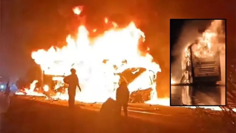 Bus Accident : कर्नाटक में भीषण सड़क हादसा…! बस-लॉरी टक्कर के बाद आग…कई लोगों की मौत…यहां देखें VIDEO