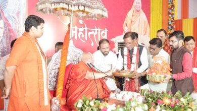 Korba : CM साय ने कोरबा में लिया जगद्गुरु रामभद्राचार्य का आशीर्वाद.. भवानी मंदिर का नामकरण होगा ‘कौशल्या धाम’