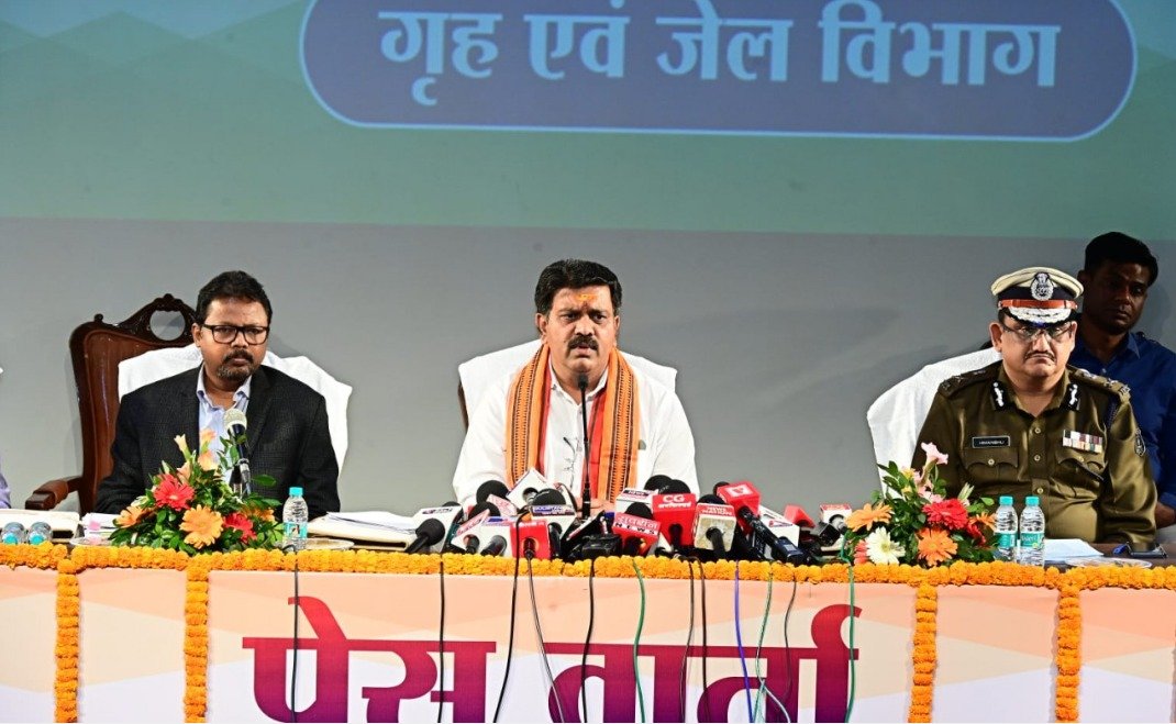 रायपुर: छत्तीसगढ़ के उपमुख्यमंत्री एवं गृहमंत्री Vijay Sharma ने शुक्रवार को Naya Raipur स्थित Samvad Auditorium में आयोजित प्रेस वार्ता में गृह एवं जेल विभाग की उपलब्धियों का विस्तृत ब्यौरा प्रस्तुत किया। उन्होंने कहा कि सरकार गठन के बाद सुरक्षा व्यवस्था को आधुनिक और तकनीक आधारित बनाने पर विशेष जोर दिया गया है।