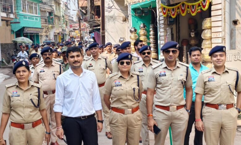 शहर के प्रमुख इलाकों से गुज़रा फ्लैग मार्च
