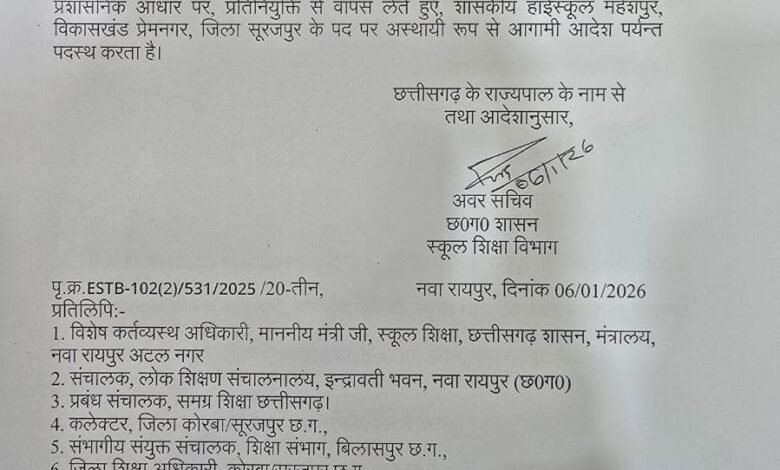 मनोज पांडे (Manoj Pandey)के खिलाफ लंबे समय से लगातार शिकायतें सामने आ रही थीं। शिक्षा व्यवस्था से जुड़े कई गंभीर आरोपों को लेकर शिक्षक संगठनों में नाराजगी थी। हाल ही में शिक्षा मंत्री के कोरबा प्रवास के दौरान शिक्षक संगठनों ने शिकायतों का पुलिंदा सौंपते हुए सीधे कार्रवाई की मांग की थी।