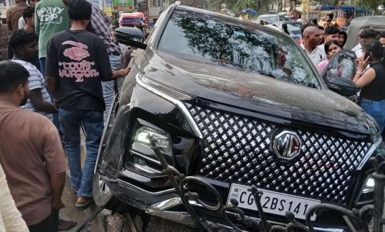KORBA BREAKING: तेज रफ्तार एमजी हेक्टर बेकाबू! घंटाघर चौक पर युवती ने कार चढ़ाई डिवाइडर पर, मचा हड़कंप