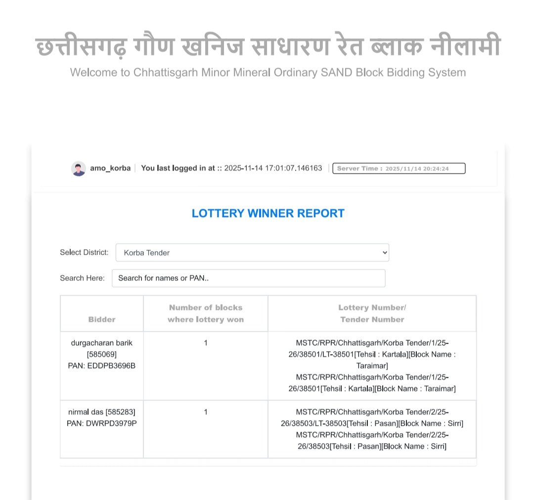 कोरबा जिले में रेत ब्लॉक नीलामी के नतीजे जारी हो गए हैं। करतला क्षेत्र के तरईमार रेत घाट पर इस बार बारीक परिवार ने बढ़त बनाई है। नीलामी में सबसे मजबूत बोली लगाते हुए उन्होंने घाट अपने नाम किया।