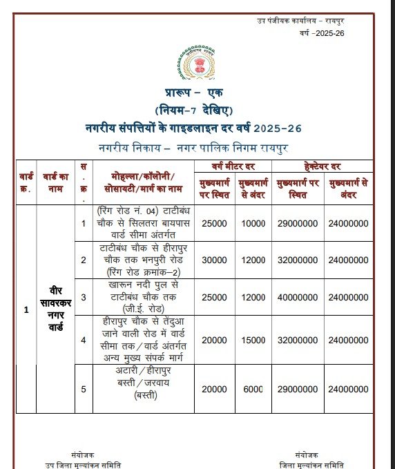 Guideline Rates : छत्तीसगढ़ में गाइडलाइन दरों का बड़ा संशोधन…! नगरीय क्षेत्रों में 20% और ग्रामीण क्षेत्रों में इतनी की वृद्धि