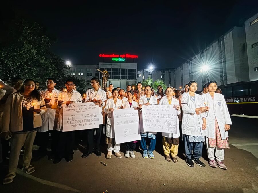 कैंटल जलाकर और तख्तियां लेकर मेडिकल छात्रों ने किया सरकार के फैसले का विरोध