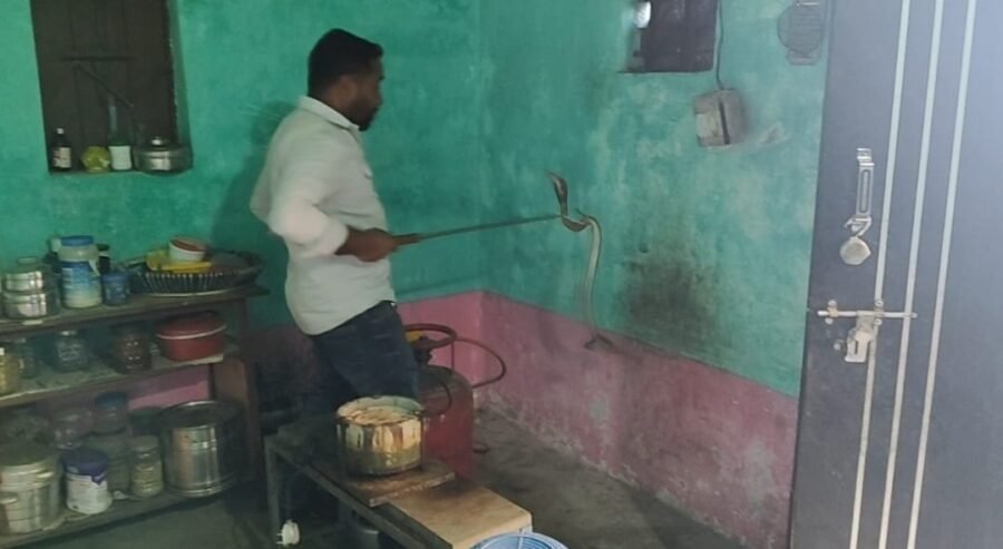 सूचना मिलते ही जितेंद्र सारथी अपनी टीम के साथ मौके पर पहुंचे और पूरी सावधानी व कुशलता के साथ नाग का सुरक्षित रेस्क्यू किया। विशेष उपकरणों की मदद से सांप को पकड़कर सुरक्षित थैले में रखा गया। रेस्क्यू के बाद घर के सभी सदस्यों ने राहत की सांस ली।