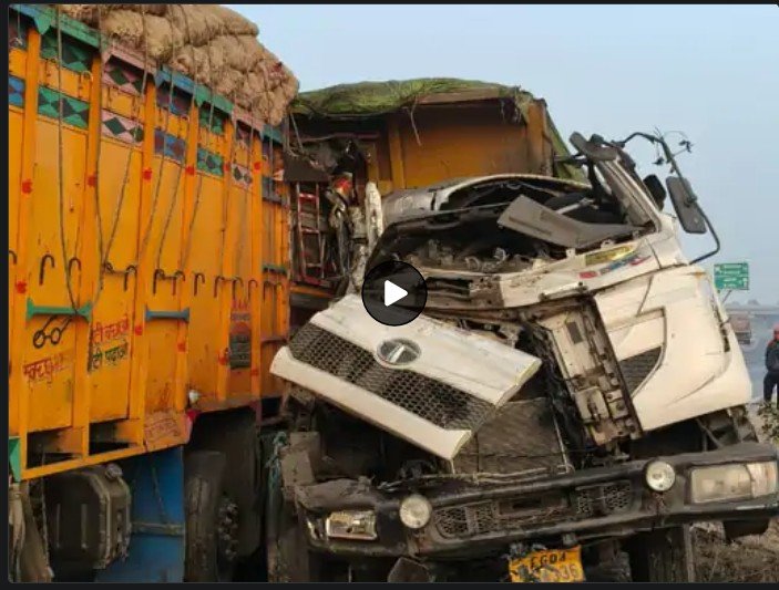 टक्कर इतनी जोरदार थी कि वाहन क्षतिग्रस्त