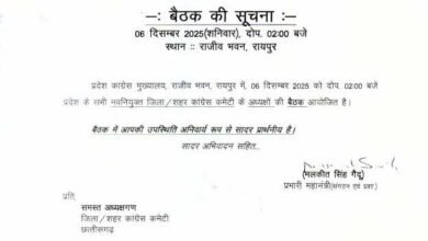 CG News: रायपुर। प्रदेश कांग्रेस मुख्यालय राजीव भवन में प्रदेश के सभी नवनियुक्त जिला कांग्रेस अध्यक्षों की बैठक 06 दिसंबर…