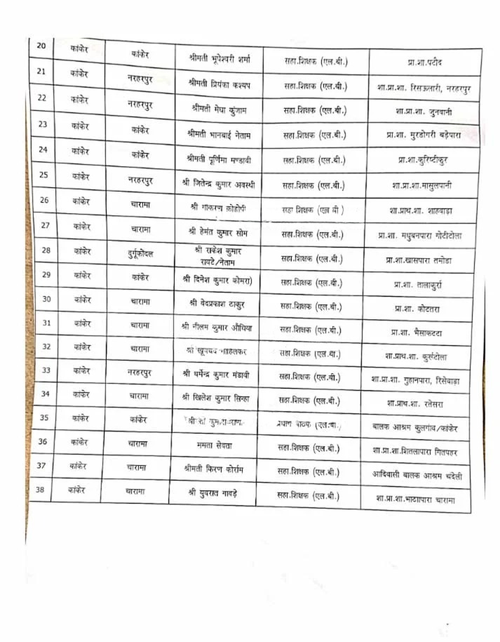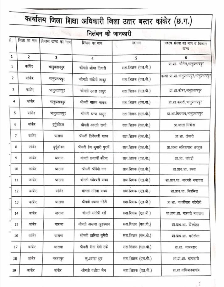 जानकारी के अनुसार, कांकेर जिले में युक्तियुक्तकरण प्रक्रिया के तहत आवश्यकता से अधिक पाए गए शिक्षकों को अतिशेष घोषित कर अन्य विद्यालयों में नई पदस्थापना दी गई थी। जिला शिक्षा विभाग ने सभी संबंधित शिक्षकों को निर्धारित समय-सीमा के भीतर नए विद्यालयों में कार्यभार ग्रहण करने के स्पष्ट निर्देश दिए थे।